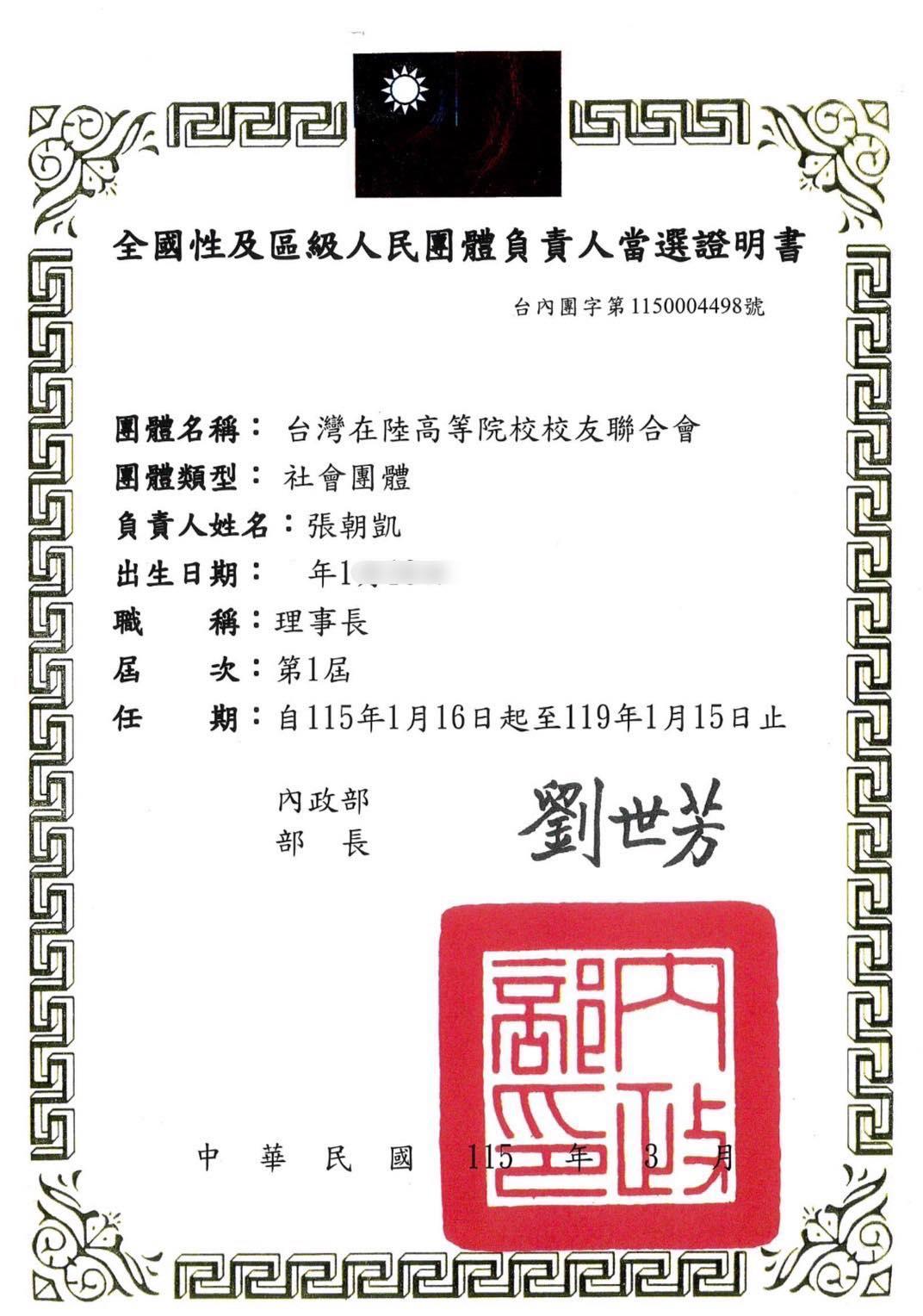 很開心出席「台灣在陸高等院校校友聯合會」成立大會,同時主持第十三屆「海峽兩岸經濟與文化交流論壇」