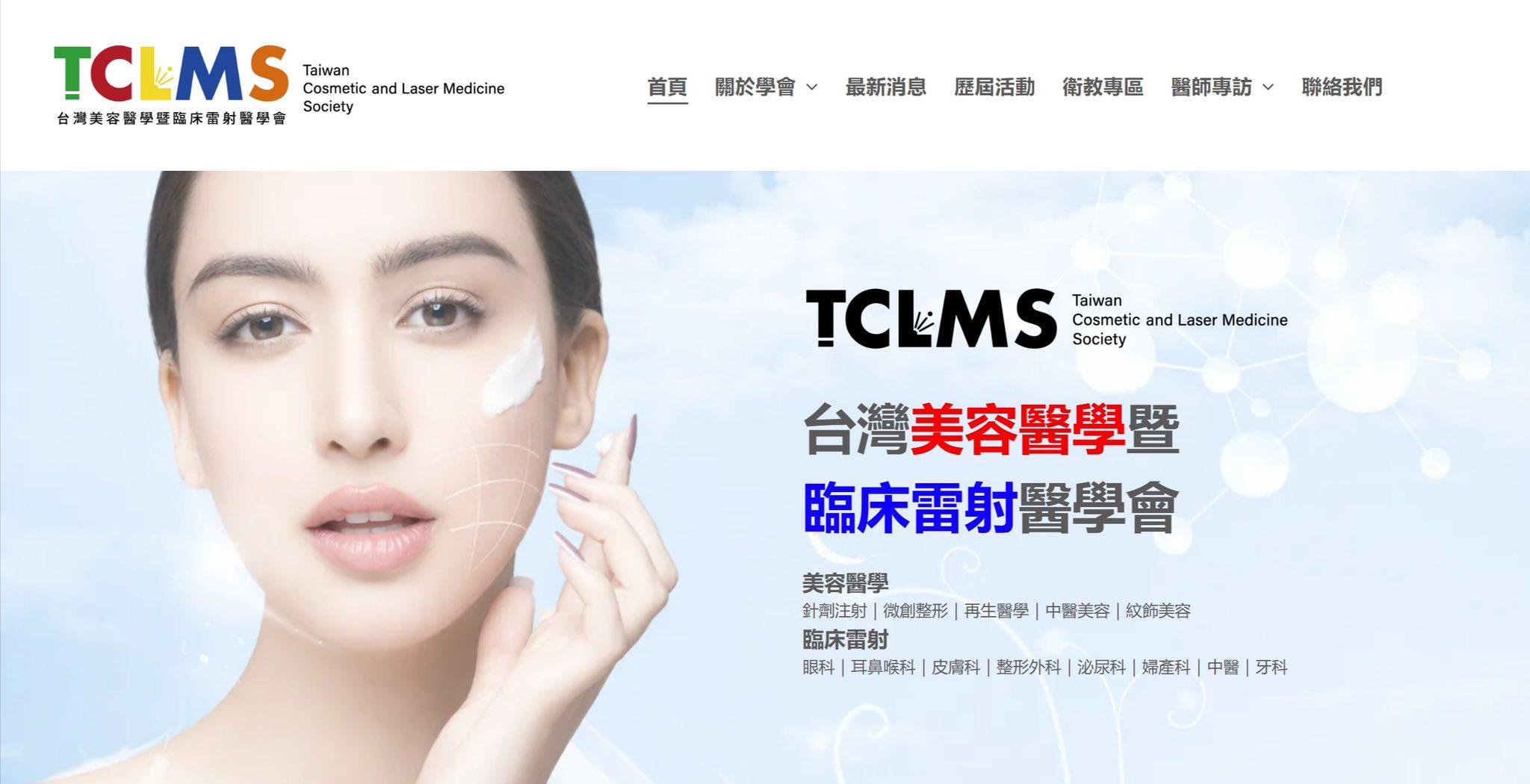 台灣美容醫學暨臨床雷射醫學會 TCLMS(Taiwan Cosmetic and Laser Medicine Society) 官方網站: https://www.tclms.org.tw/