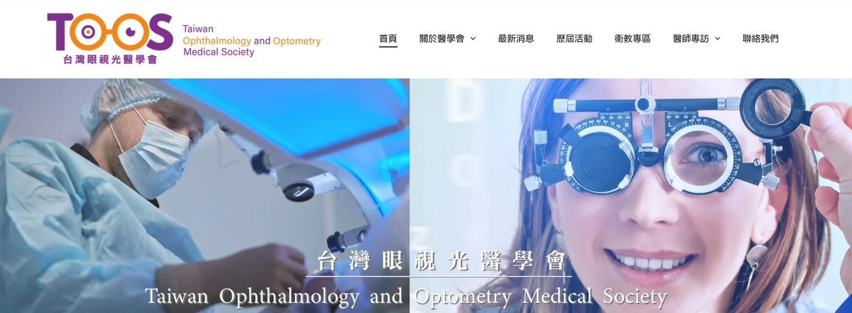 台灣眼視光醫學會TOOS(Taiwan Ophthalmology and Optometry Medical Society) 官方網站: https://www.tooms.org.tw/
