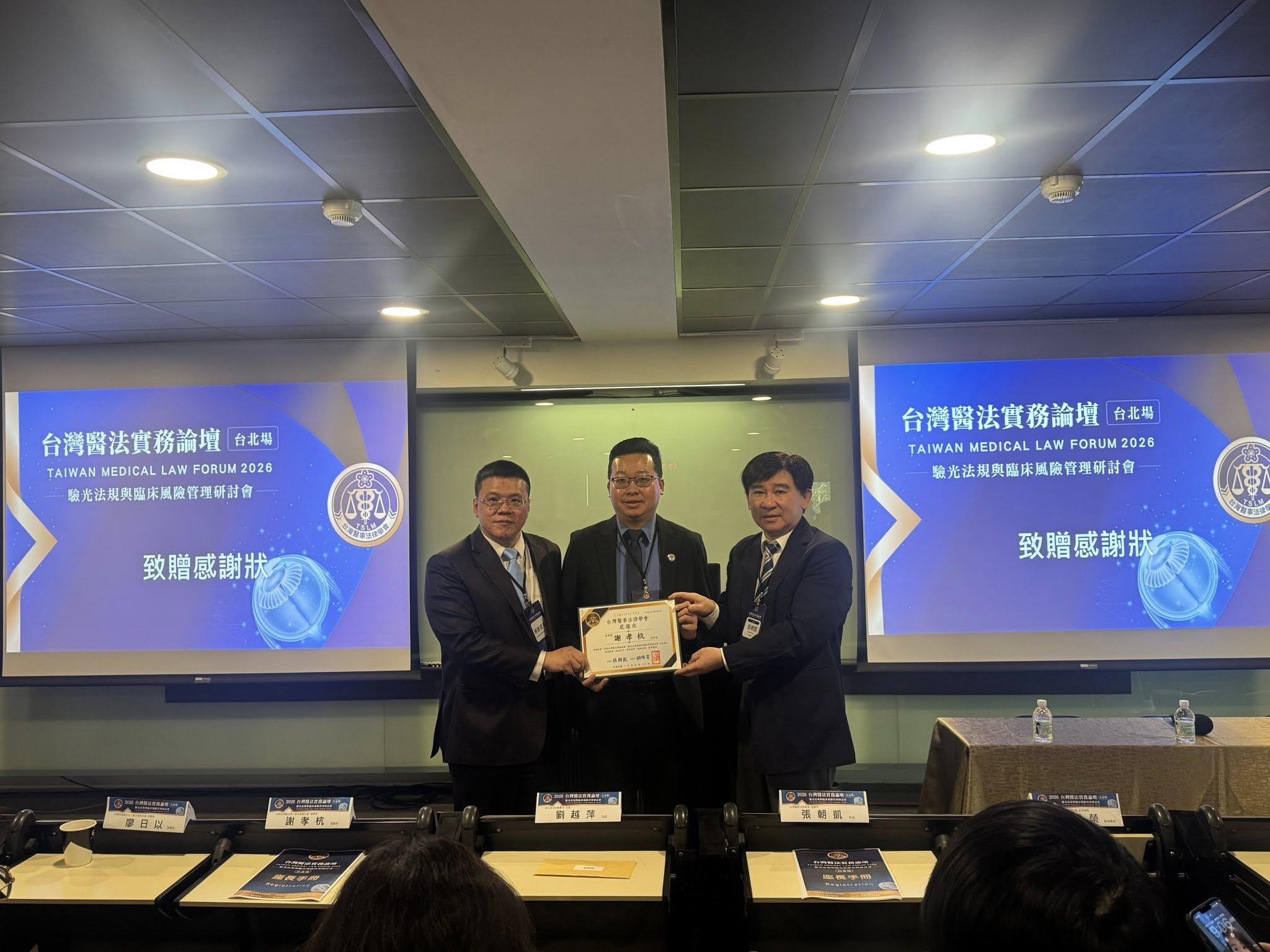 也代表主辦單位「台灣醫事法律學會」,感謝胡峰賓、施志遠、盧天成三位律師,許文章、林宜鴻兩位醫師及蕭清仁、陳資嵐兩位老師擔任大會的講師和與談人 ,讓大會的議程精彩豐富,與會者滿載而歸。