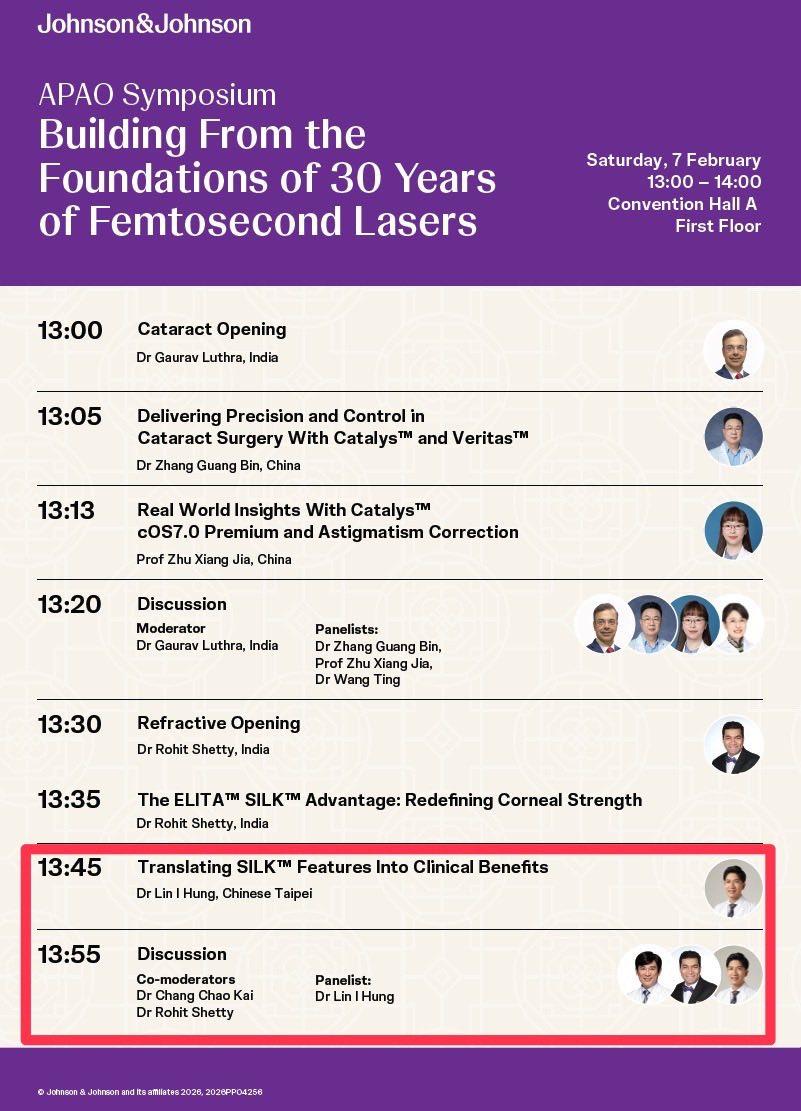 2026年2月7日-諾貝爾眼科醫師(林宜鴻,羅育倫,沈仁翔 及 趙振程四位醫師)於香港舉辦的APAO ( 亞太眼科醫學會年會)所發表的論文摘要。