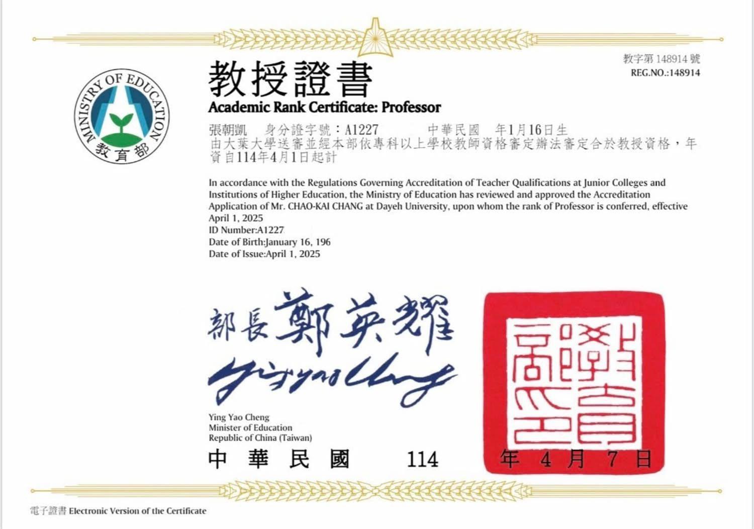 2025年12月31日-收到來自「高雄醫學大學/臨床醫學研究所/兼任教授」的聘書