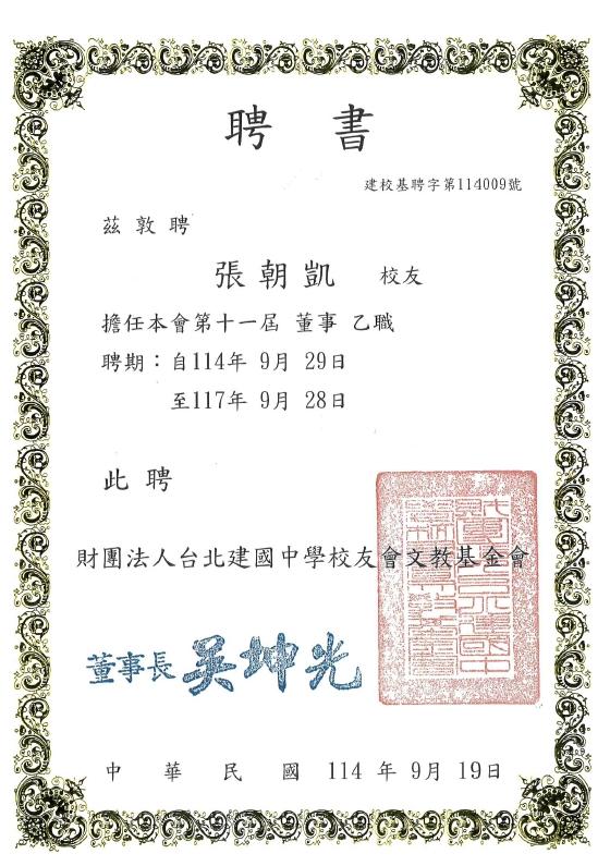 民國114年9月至117年9月-當選財團法人台北建國中學校友會文教基金會 董事