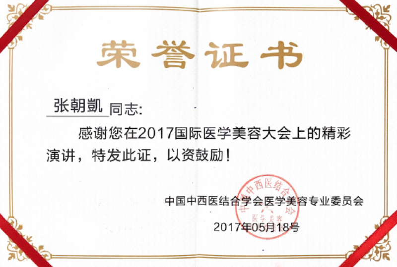 民國106年5月-榮譽證書-於2017國際醫學美容大會發表演講