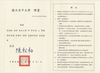 民國97年8月-聘書-擔任國立空中大學97學年度 兼任講師