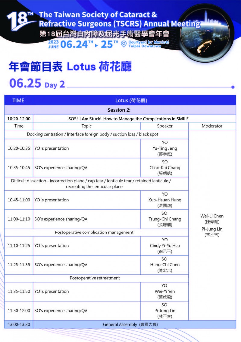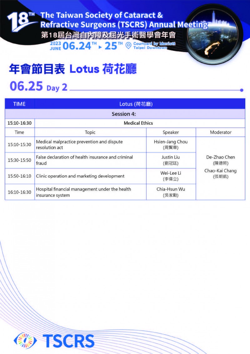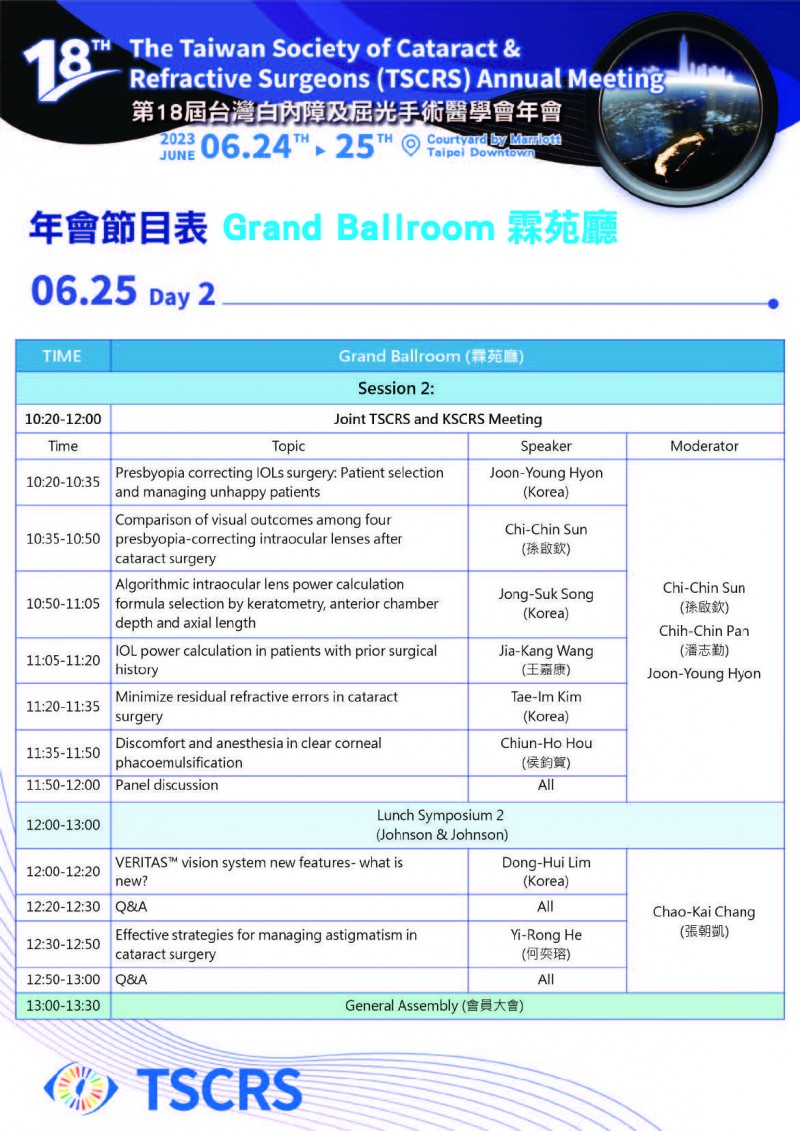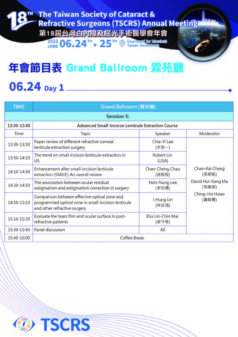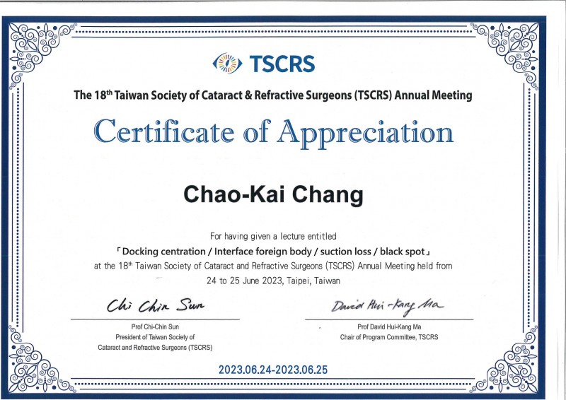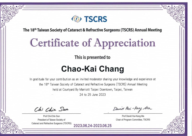 民國112年6月-擔任【TSCRS第18屆台灣白內障及屈光手術醫學會年會】座長與講師