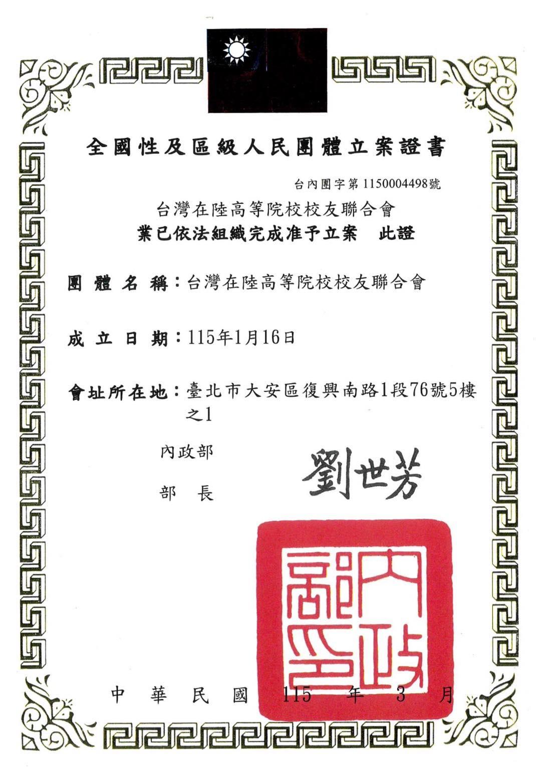 很開心出席「台灣在陸高等院校校友聯合會」成立大會,同時主持第十三屆「海峽兩岸經濟與文化交流論壇」