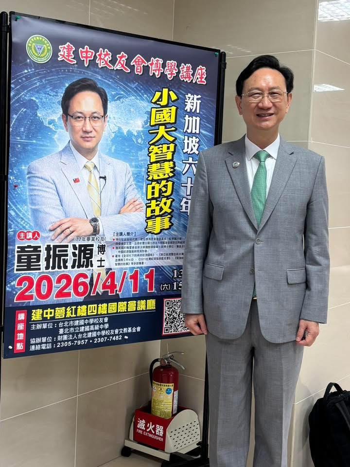 童大使這一次接受「建國中學校友會」的邀請,在上週六返回母校演講「小國大智慧的故事-新加坡60年」,受到校友會吳理事長,莊校長及建中校友的熱烈歡迎。