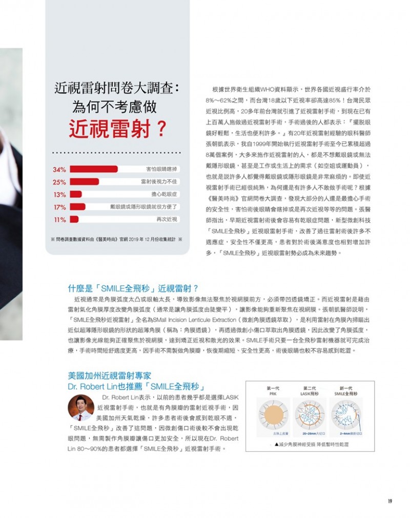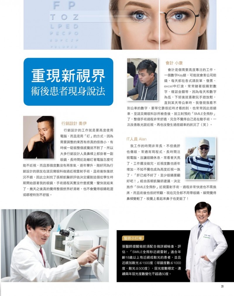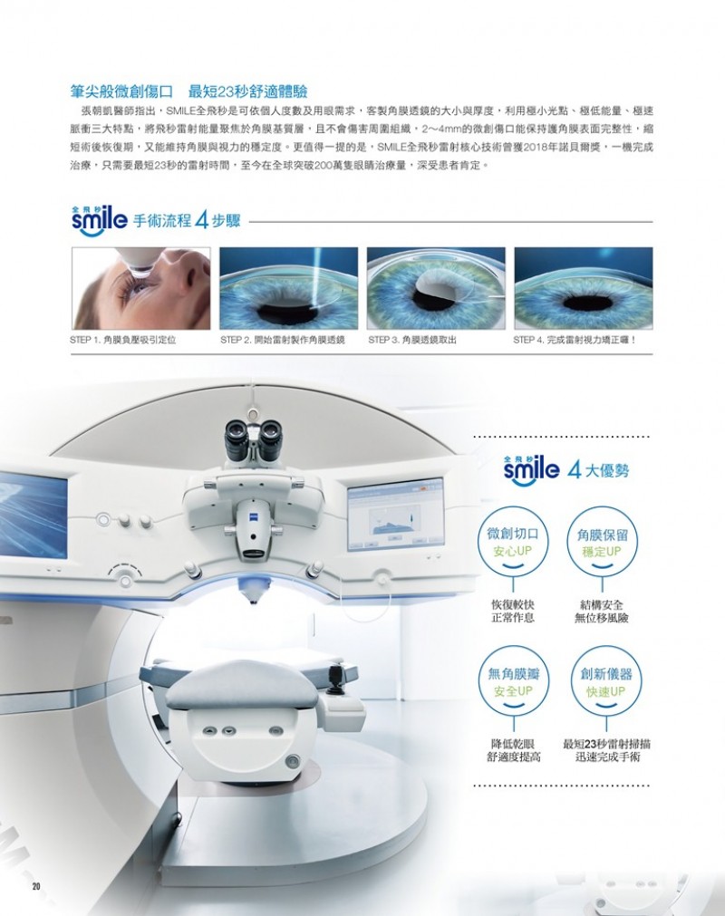 2020年01月 07日 醫美時尚雜誌 介紹張朝凱醫師 引進 德國蔡司Smile全飛秒近視雷射手術