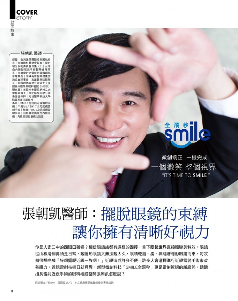 2020年01月 07日 醫美時尚雜誌 介紹張朝凱醫師 引進 德國蔡司Smile全飛秒近視雷射手術