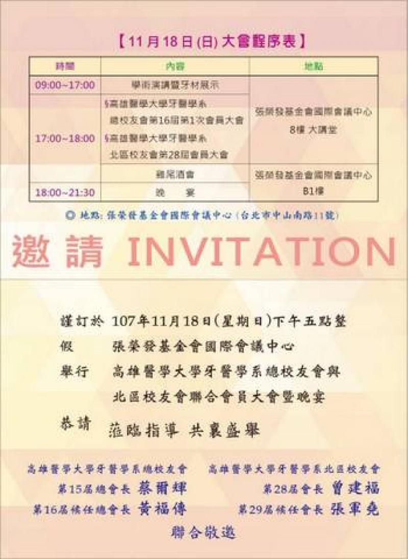 2018年11月18日 張朝凱校友參加高醫大學 牙醫學系總校友會及北區友會聯合晚會