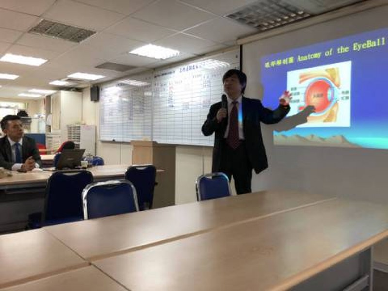 2018年10月31日張朝凱醫師接受南山人壽公司員工例會說明白內障等眼疾的防治